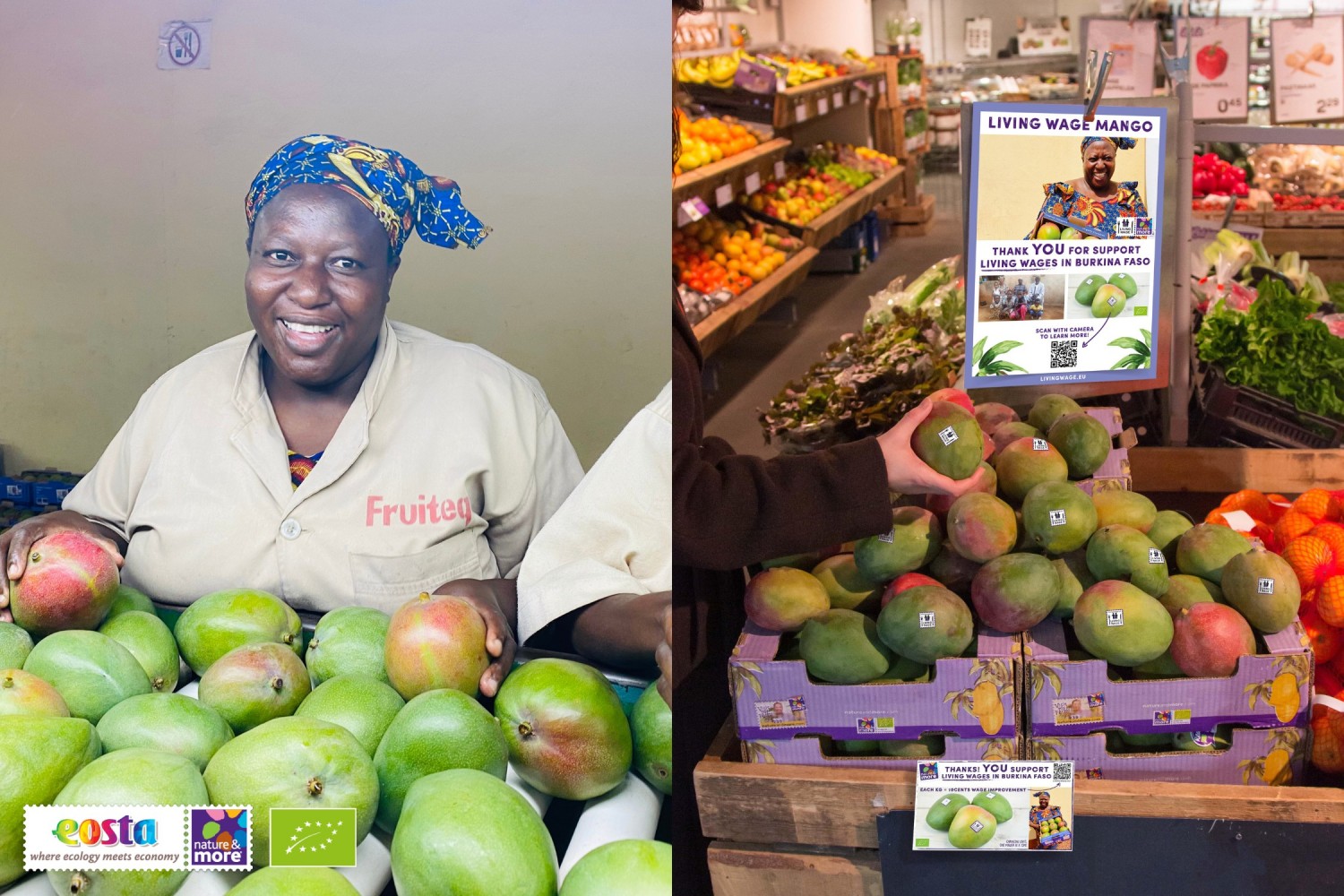 While major food companies such as Nestlé and Unilever mainly focus on developing Living Income policies, Eosta has been putting Living Wages into practice in the organic fresh produce chain since 2020. As the first organic fruit importer to do so, Eosta launched a concrete Living Wage project for mangoes from Burkina Faso, in cooperation with partner Fruiteq.